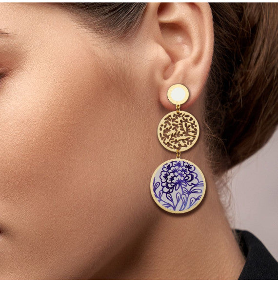Composition: Laiton | Finition brossée | Bain d'or et couleurs | Vernis de protection | Attaches de boucles en argent 925 doré à l'or fin.