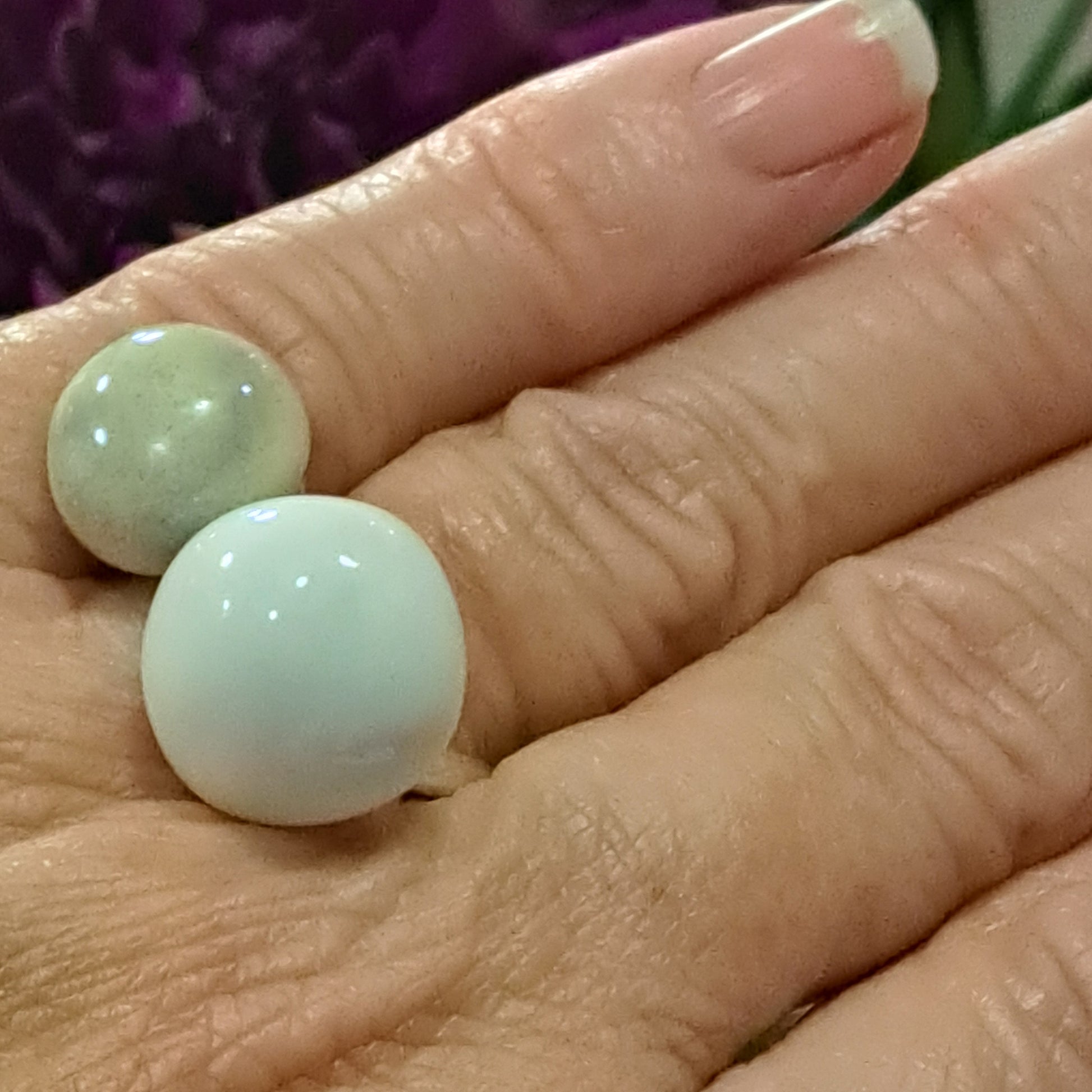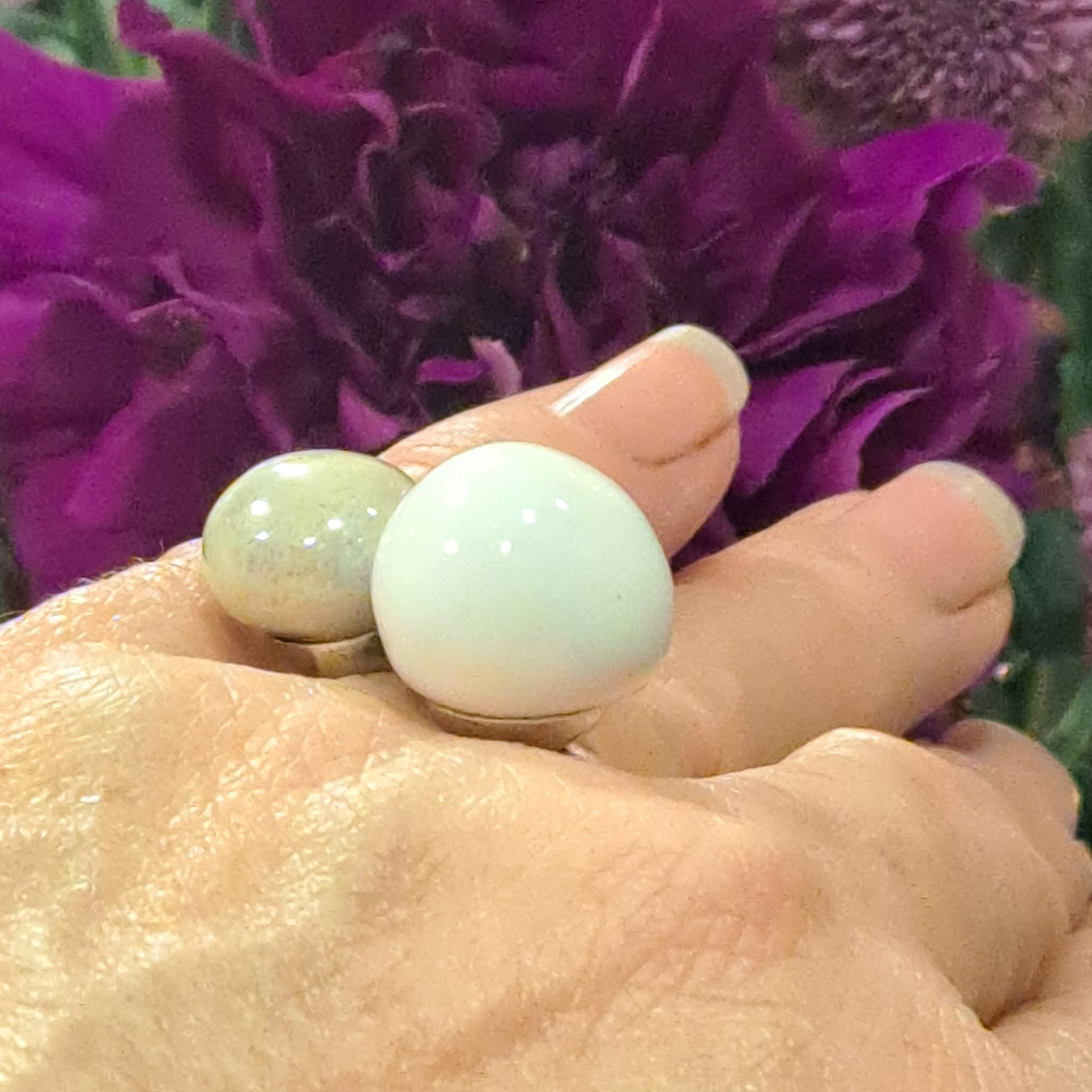 Bague DUO blanc et ivoire CHISTINE ALLOING. Bague en faïence émaillée réglable, composée de é boules décalées. Elle mesure environ 2.5cm x 1.2cm et 1.5cm d'épaisseur.