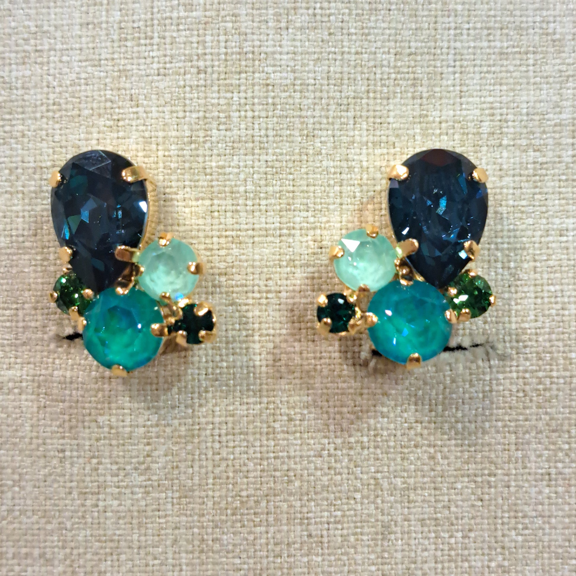Boucles clips CREZUS en cristal de Swarovski bleu vert griffé brillant.