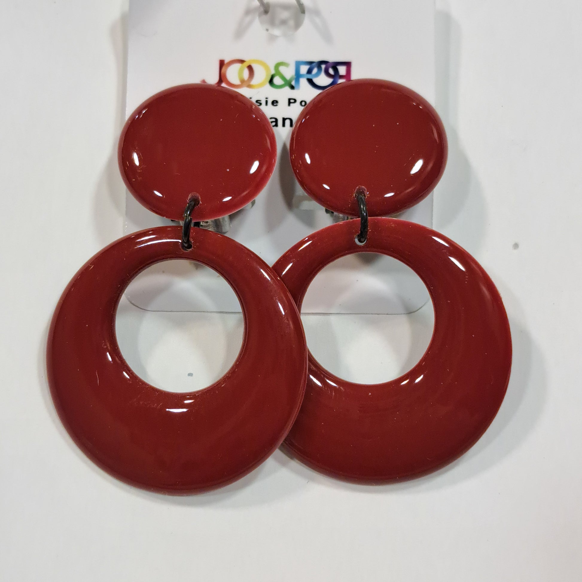 Boucles CREOLE clips rouge bordeaux THIERRY JOO.