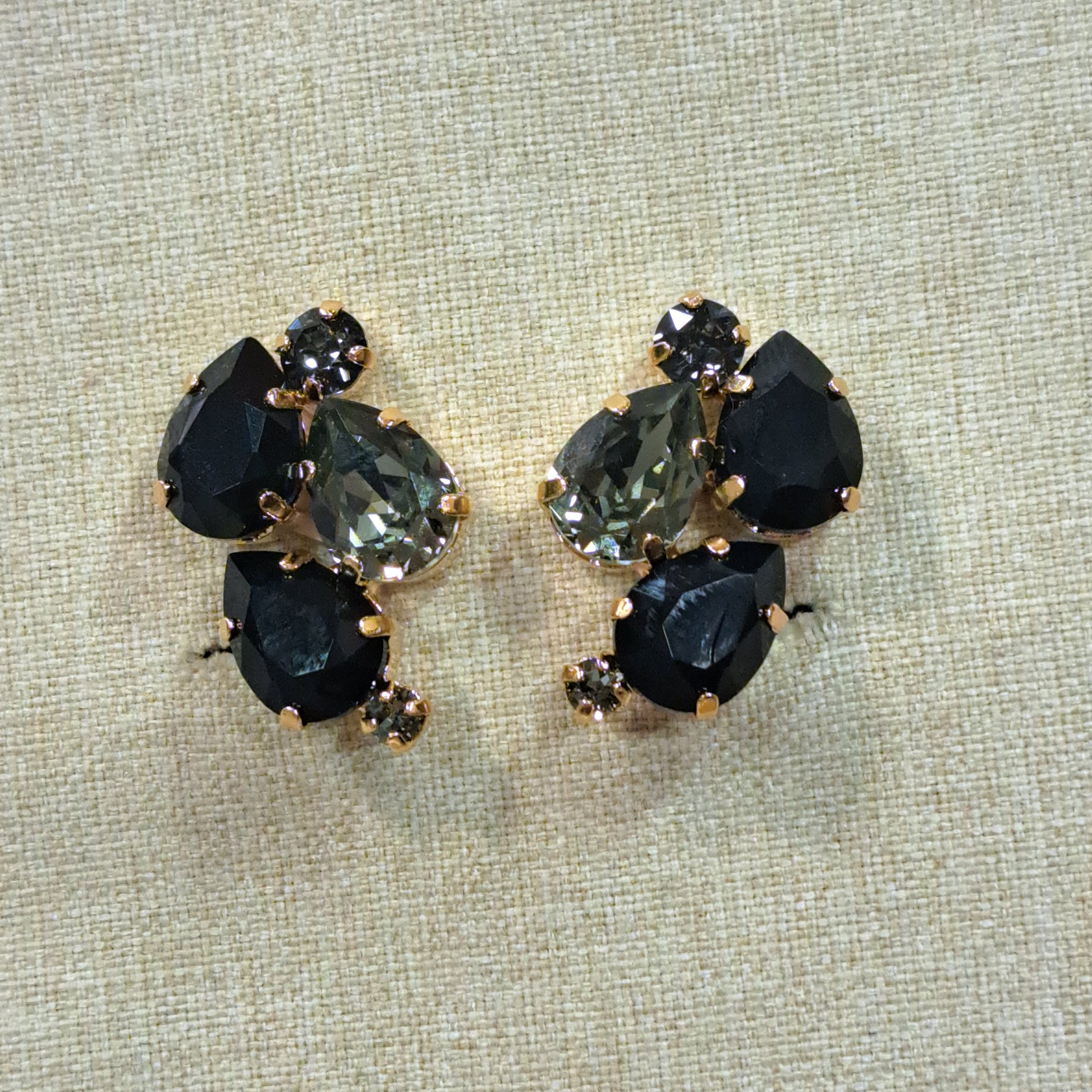 Boucles clips CREZUS en cristal de Swarovski noir gris griffé brillant.