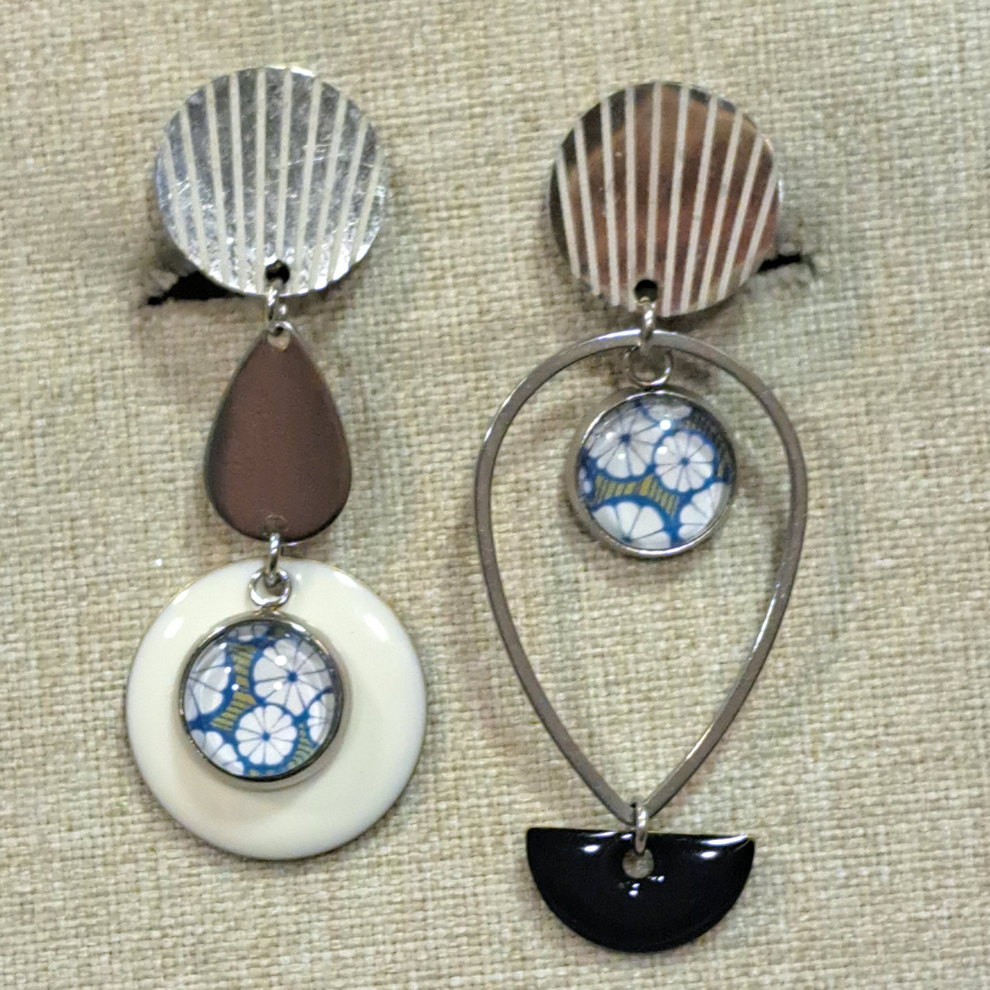 Boucles Clips TORONTO asymétriques bleu noir blanc argent UN CHAT QU'A SA PUCE.