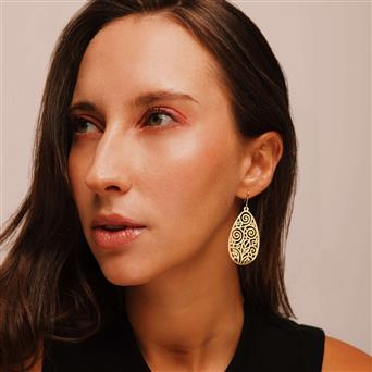 Composition : Laiton | Finition brossée | Bain d'or et vernis de protection | Attaches de boucles en argent 925 recouvertes d'or. Fabrication artisanale espagnole.