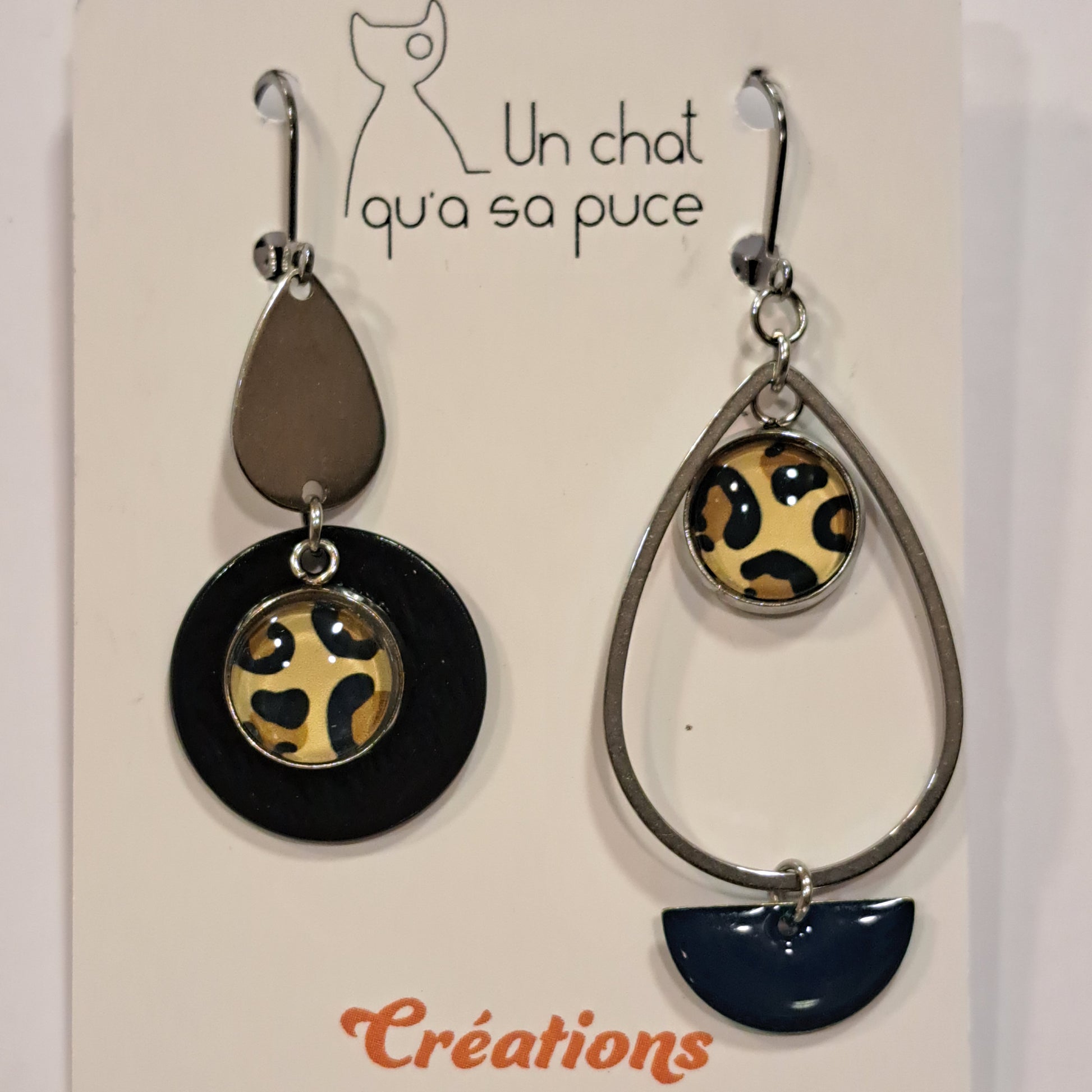 Boucles TORONTO asymétriques percées noir UN CHAT QU'A SA PUCE.
