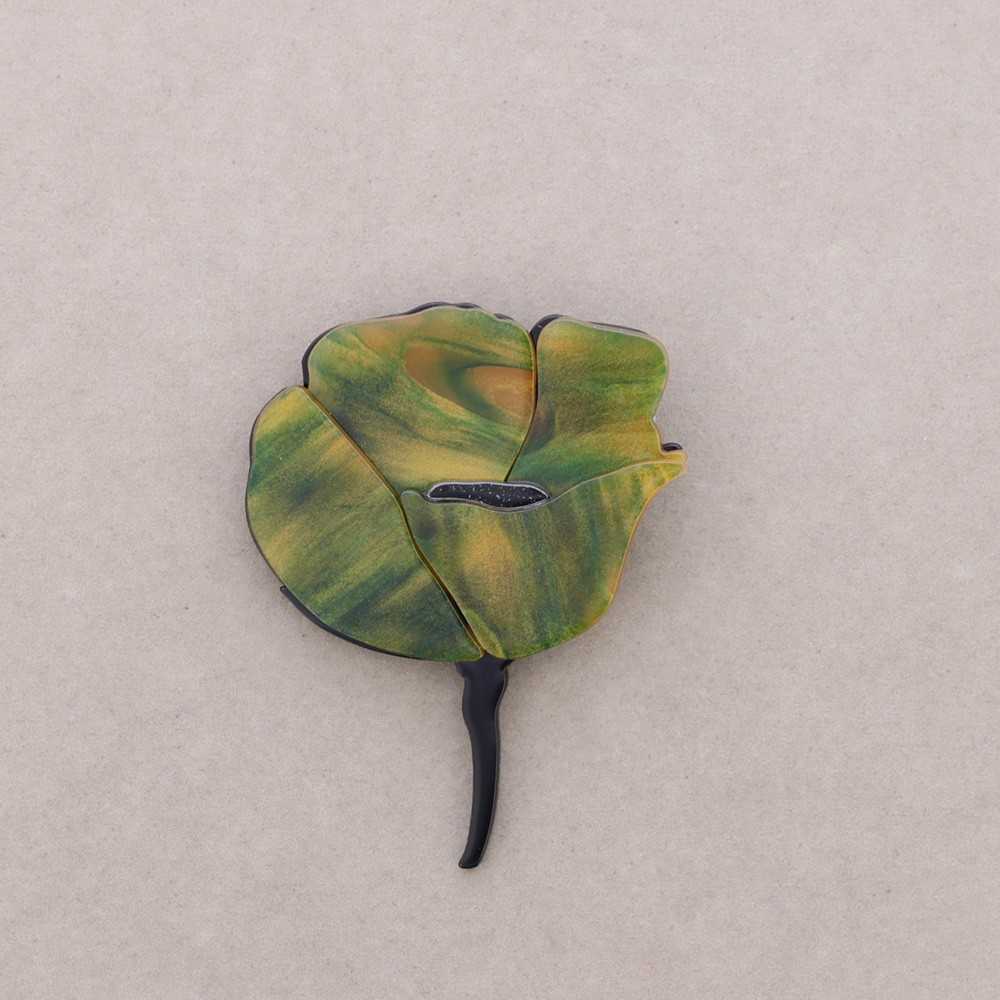 Broche FLEUR TIGE vert or nacré FANCY FANTAISIE.