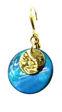 Boucles dormeuses dorées à l'or fin en Nacre colorée de diamètre 18mm.